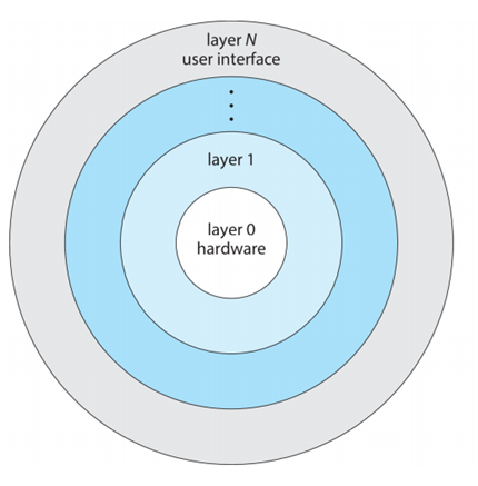Layered Approach : The operating system is divided into a number of layers (levels), each built on top of lower layers