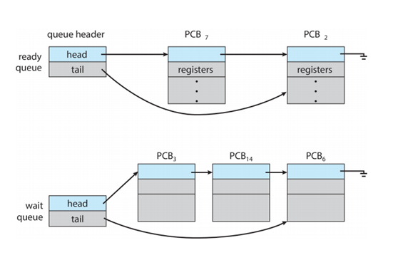 Ready queue : set of all processes residing in main memory, ready and waiting to execute